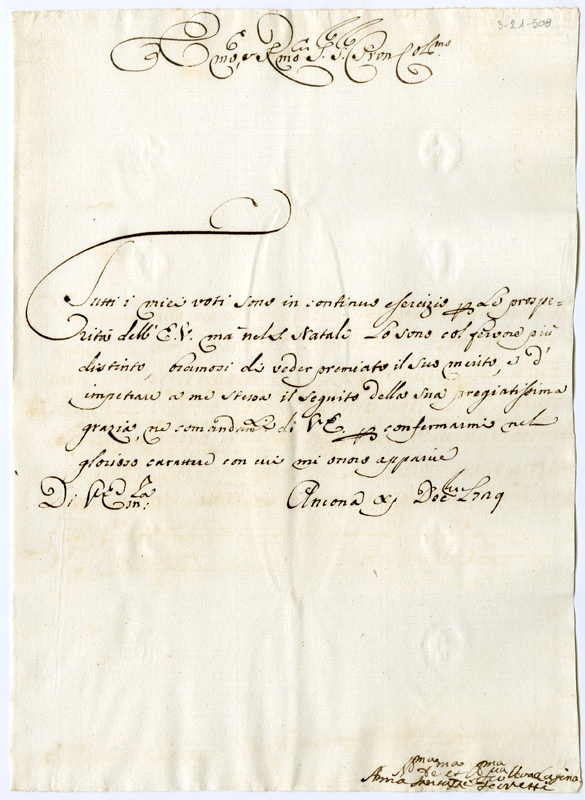 Lettera di Anna Fantuzzi Ferretti al cardinale Annibale Albani (1729 dicembre 11)