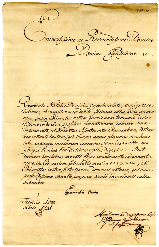 Lettera al cardinale Annibale Albani (1731 dicembre 10)