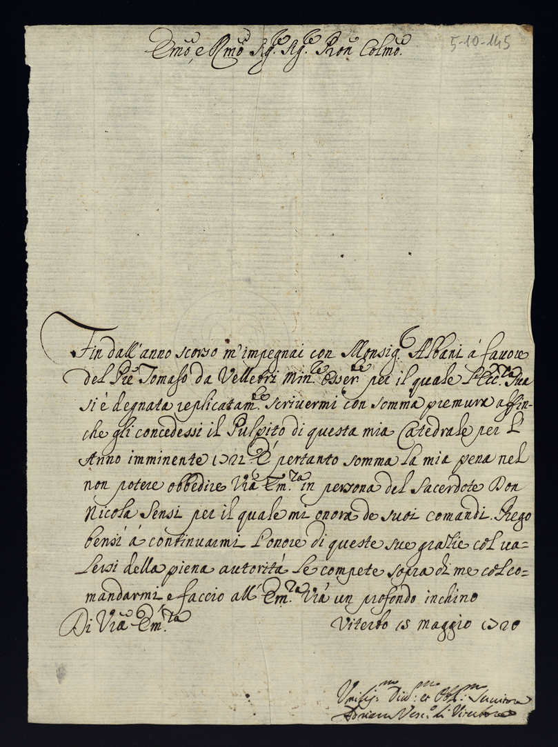 Lettere di raccomandazione. 1710 - 1723