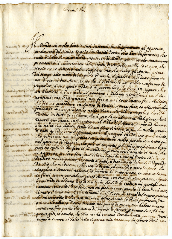 Lettera di Giovanni Crisostomo di San Paolo a papa Clemente XI (1704 maggio 8)