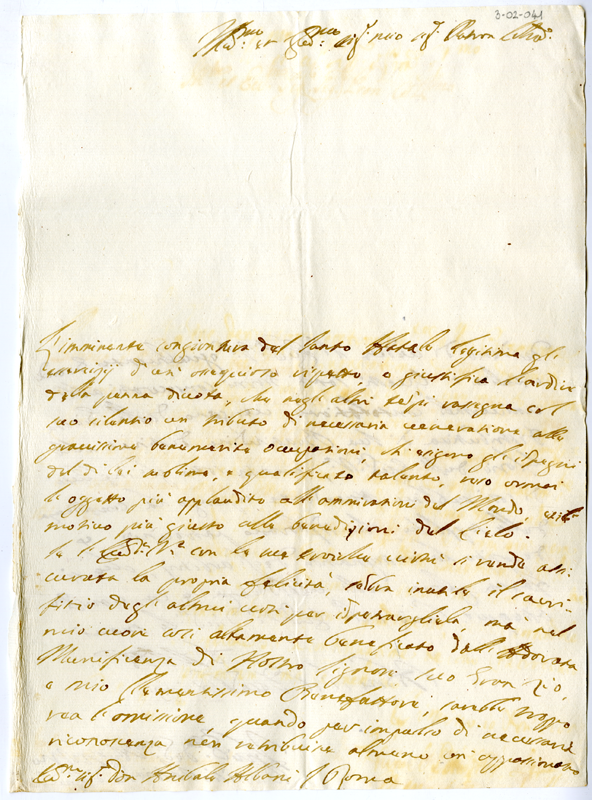 Lettera di Dionisio patriarca d'Aquileia ad Annibale Albani (1705 dicembre 16)