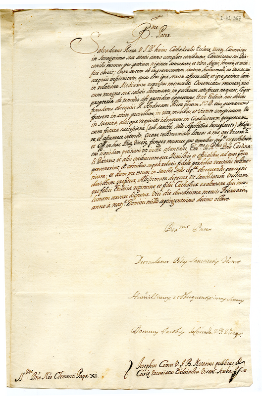 Lettera di Giacomo de Corradi a papa Clemente XI (1718 febbraio 12)