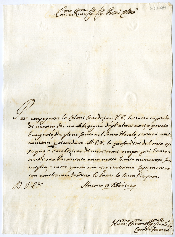 Lettera di Cesare Ferretti al cardinale Annibale Albani (1729 dicembre 8)