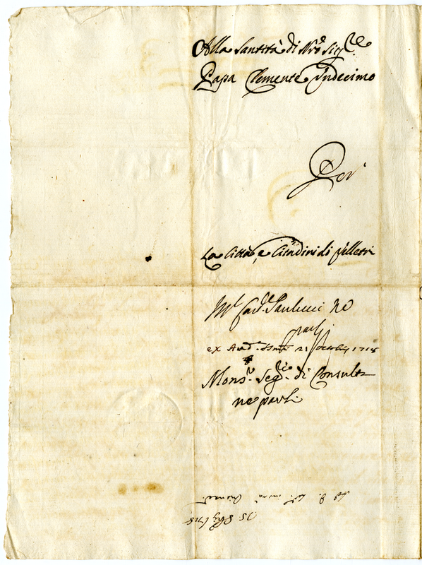 Lettera della città e cittadini di Velletri a Clemente XI (1700-1721)