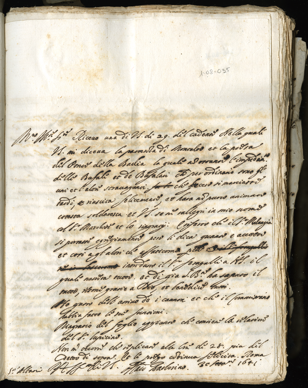 Lettera del cardinale Barberini Francesco senior a Malatesta Albani (1641 settembre 30)