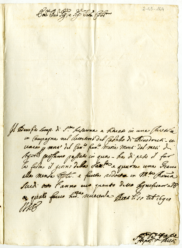 Lettera del vescovo di Rieti ad un cardinale (1698 settembre 11)