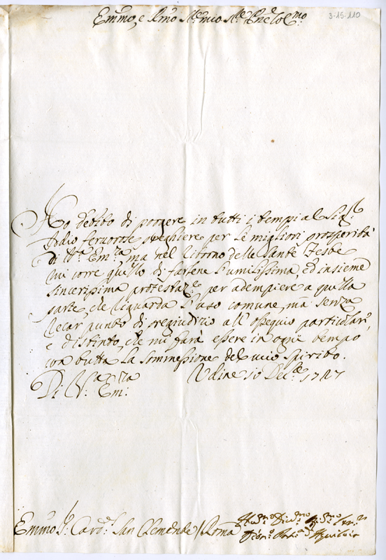 Lettera di Dionisio patriarca di Aquileia al cardinale Annibale Albani (1727 dicembre 10)