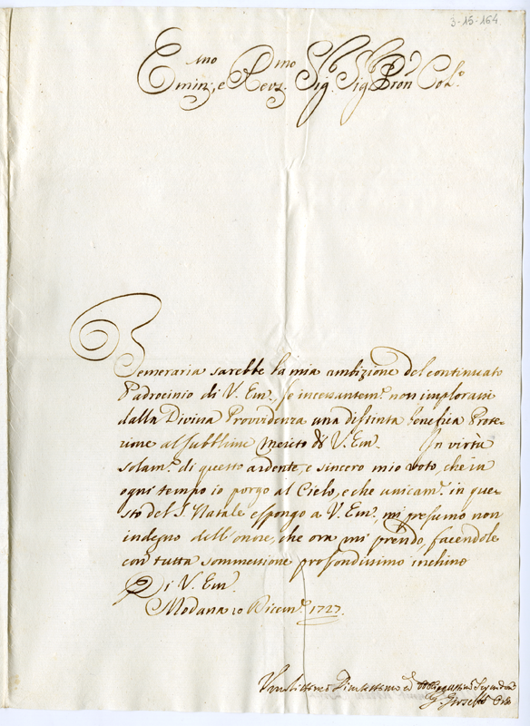 Lettera di Giovanni Gioseffo Orsi al cardinale Annibale Albani (1727 dicembre 10)