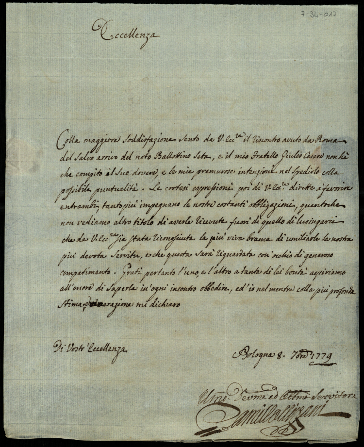 Lettere diverse ricevute dal principe Orazio Albani nella permanenza in Urbino del 1779