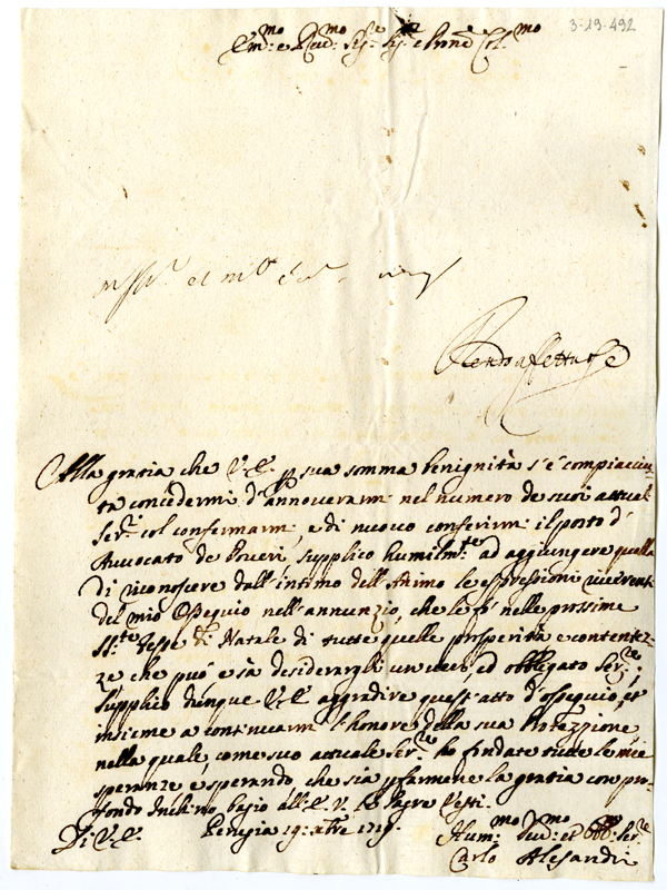Lettera di Carlo Alessandri ad Annibale Albani (1719 dicembre 19)