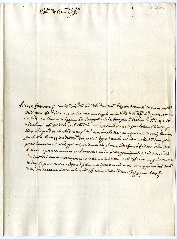 Lettera di Pietro Farroni al cardinale Sacripanti (1700-1721)