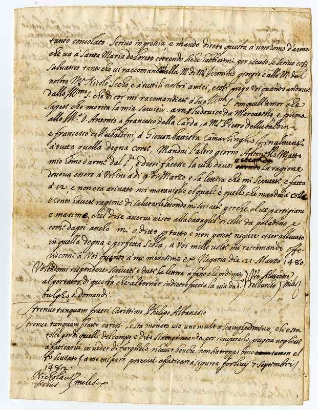 Copia di una memoria mandata a Zappe dal Senatore Orazio Albani