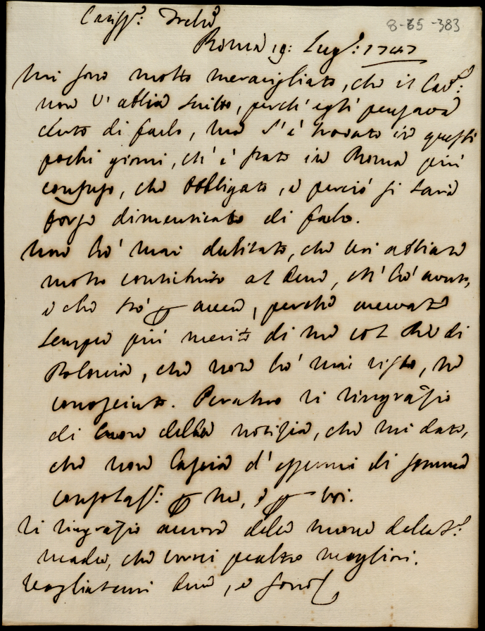 Lettere ricevute in Urbino dal Signor Principe Orazio Albani ultimo di questo nome nell'anno 1747