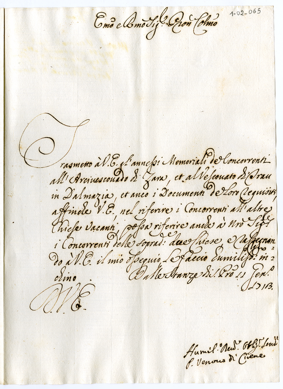 Il vescovo di Cirene scrive in merito ai requisiti dei concorrenti all'arcivescovato di Zara e al vescovato di Traù.