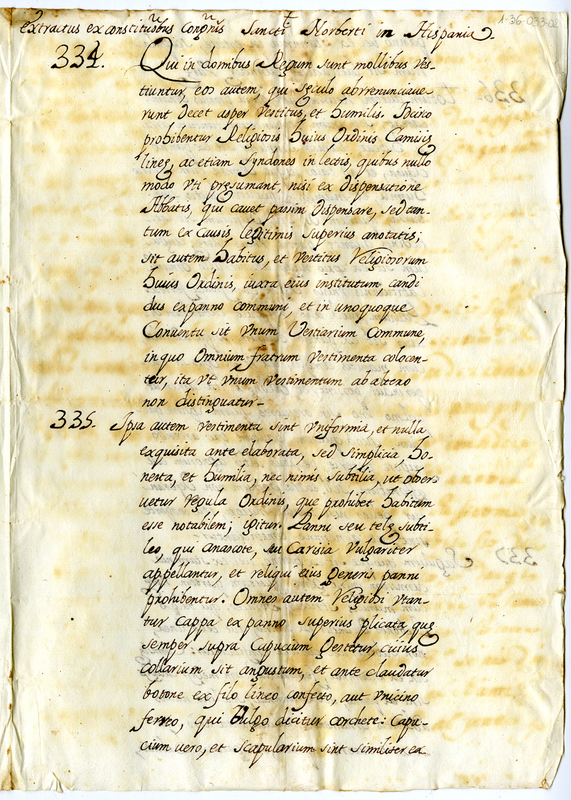 Estratto di alcuni punti tratti dalle costituzioni della Congregazione di San Norberto in Ispagna (1700-1721)