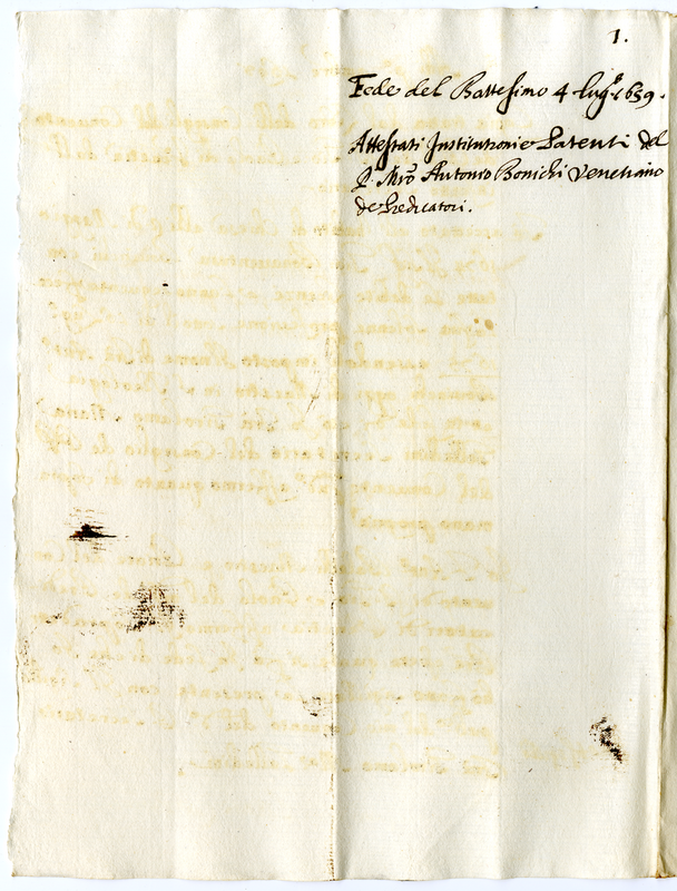 Copia della fede di battesimo di Antonio Boninchi