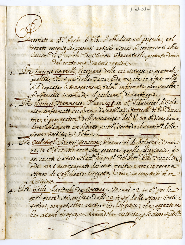 Concorrenti alla carica di generale dei minori conventuali (1700-1721)