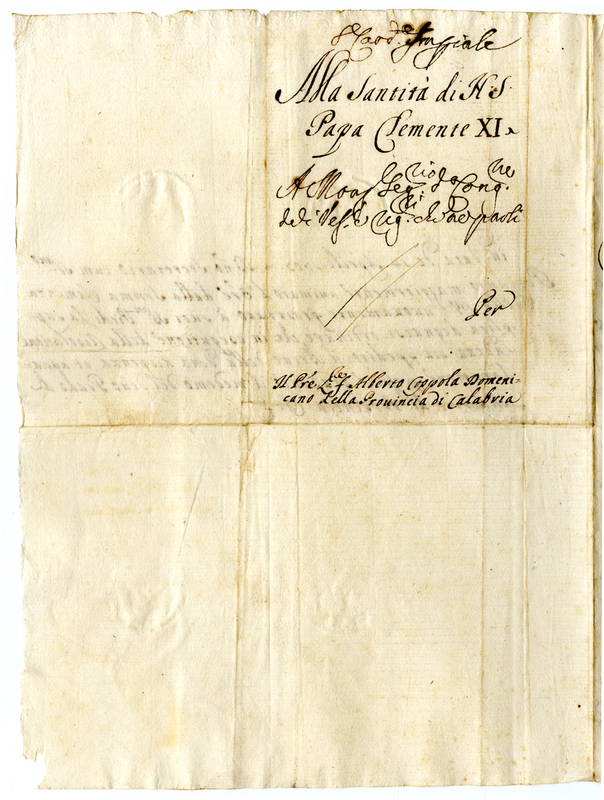 Lettera di Alberto Coppola Domenicano della provincia di Calabria convento della Minerva a Papa Clemente XI (1700-1721)
