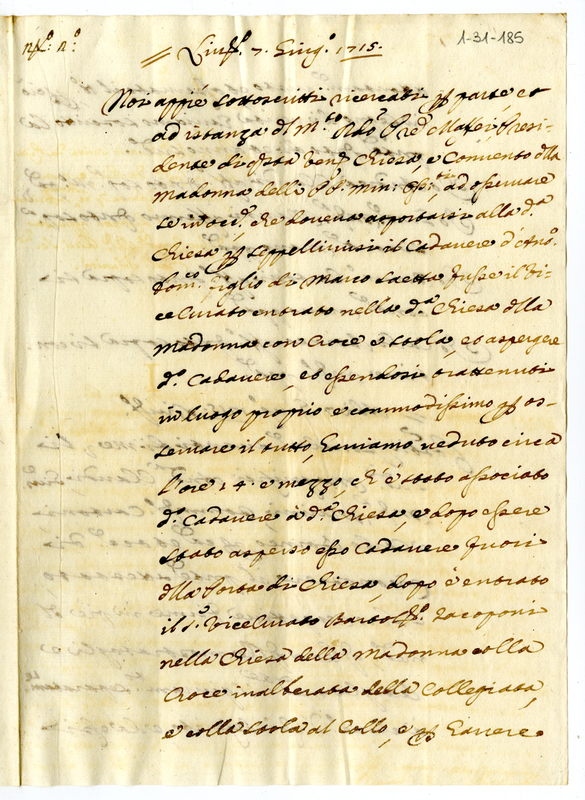 Archivio Albani|"Scritture spettanti alli frati dell'ordine de minori Conventuali, Osservanti, Riformati, Capuccini"|"1715 Livorno Lettere, e altre scritture appartenenti alle differenze vestenti tra li Frati Minori Osservanti di San Francesco di Santa Maria di Livorno, e il Proposto di quella Collegiata"|Documenti contenuti