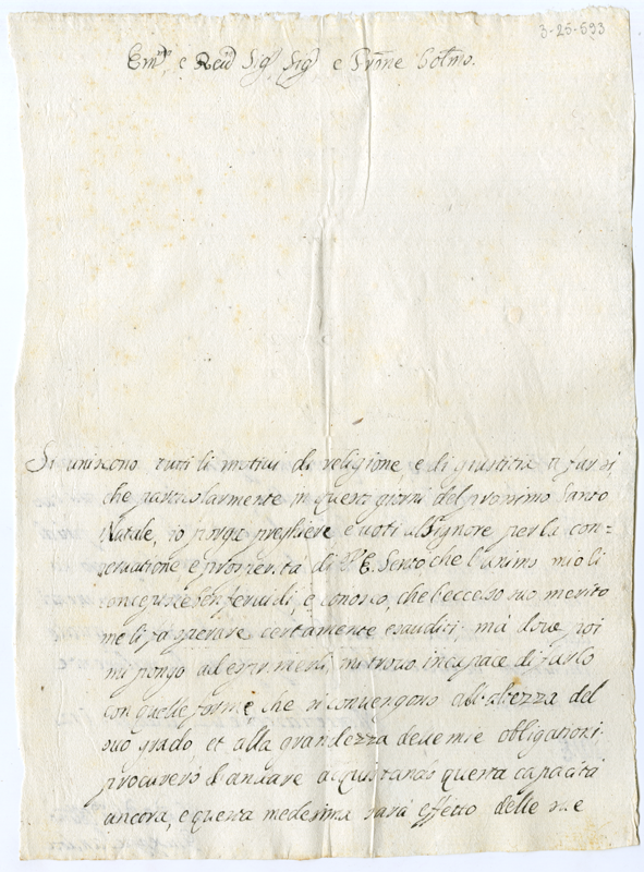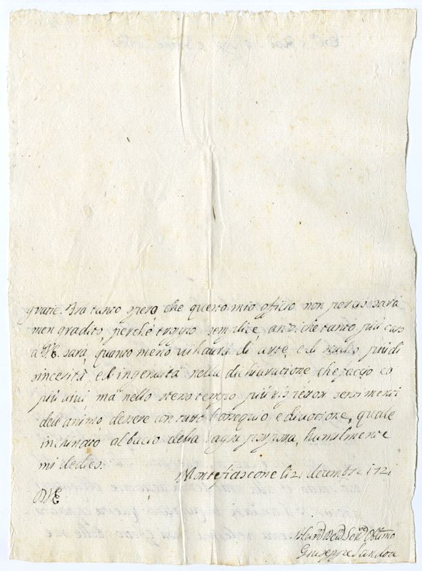 Lettera di Giuseppe Sandon al cardinale Annibale Albani (1721 dicembre 21)