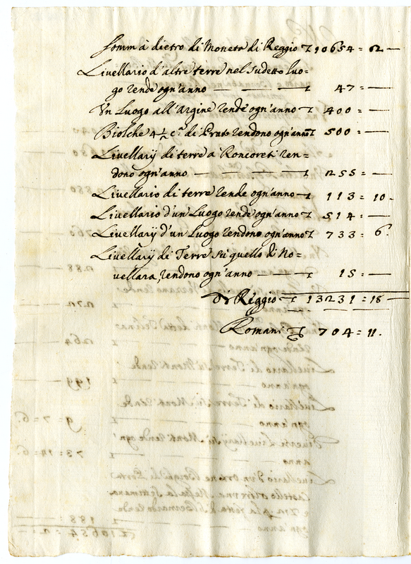 Abbazie, e Beneficii con loro rendita posseduti dalla chiara memoria dell'Eminentissimo Signor Cardinale Caprara nel Reggiano (1706-1711)