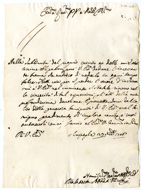 Lettera di Malatesta Abbati Olivieri ad Annibale Albani (1706 dicembre 23)