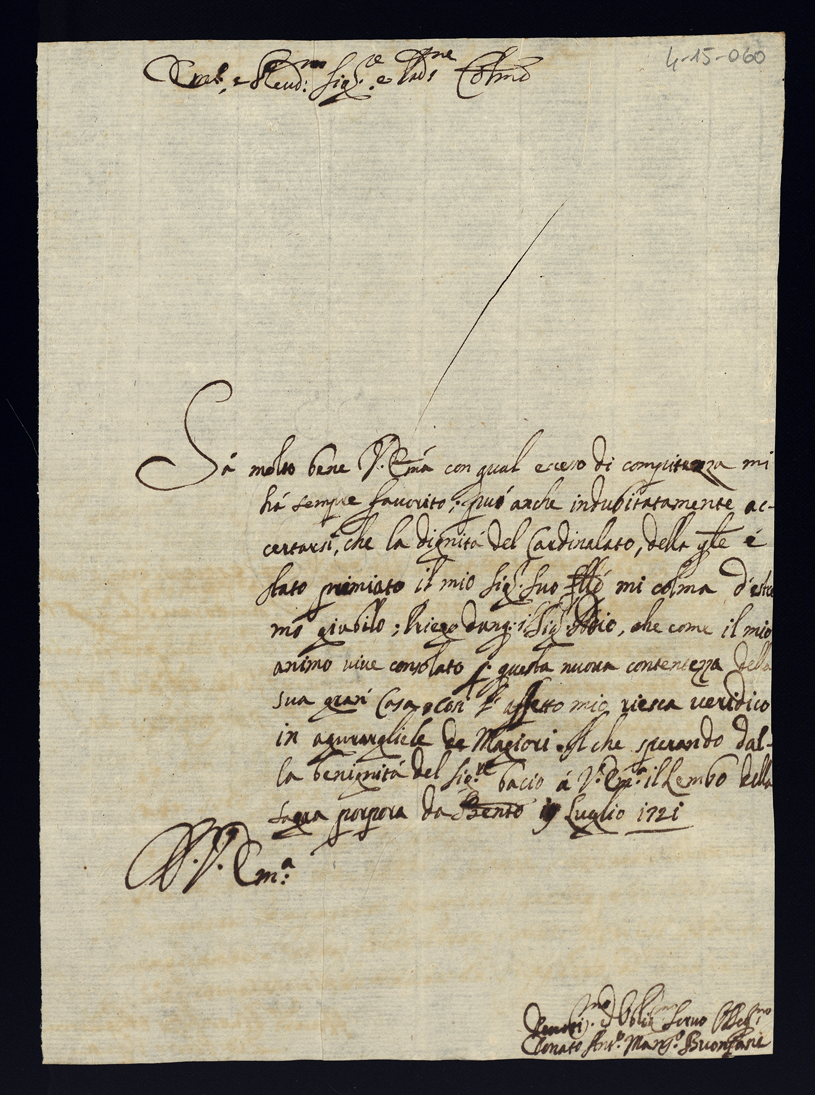Lettere di congratulazione per l'esaltazione alla Porpora dell'eminentissimo cardinale Alessandro Albani