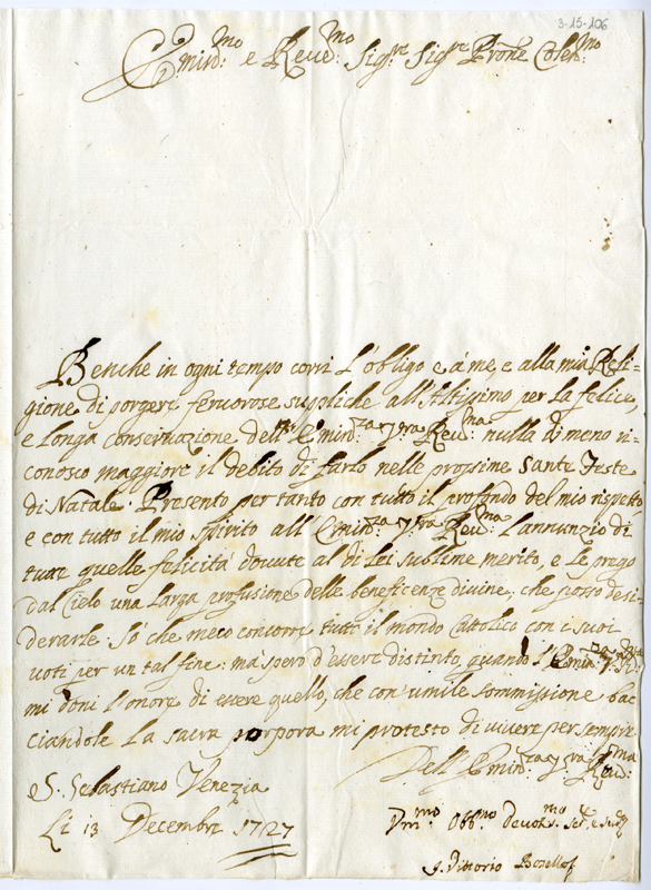 Lettera di Vittorio Boselli al cardinale Annibale Albani (1727 dicembre 13)