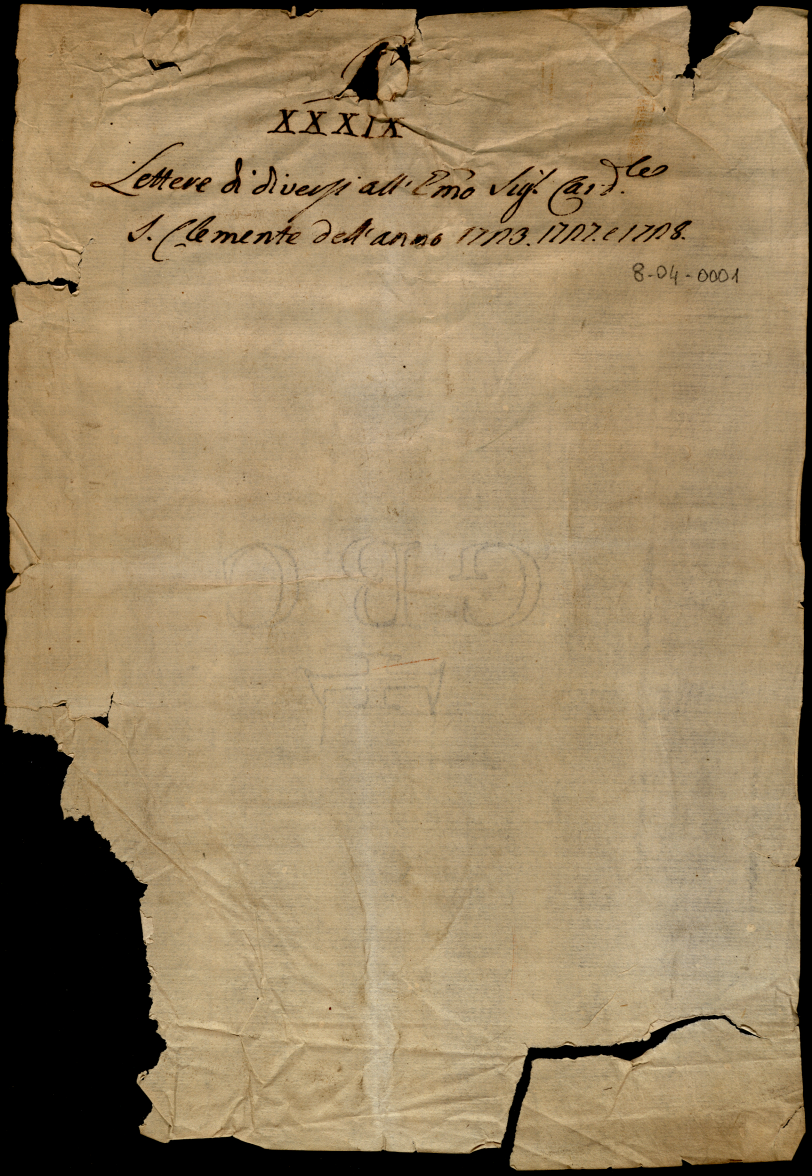 3. Lettere di diversi all'eccellentissimo signor cardinale S. Clemente dell'anno 1723, 1727 e 1728