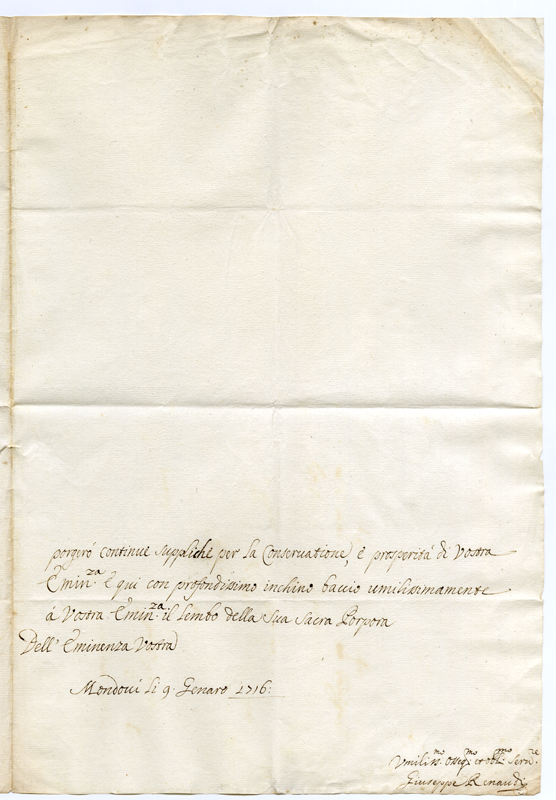 Lettera di Giuseppe Renaudi al cardinale Annibale Albani (1716 gennaio 9)