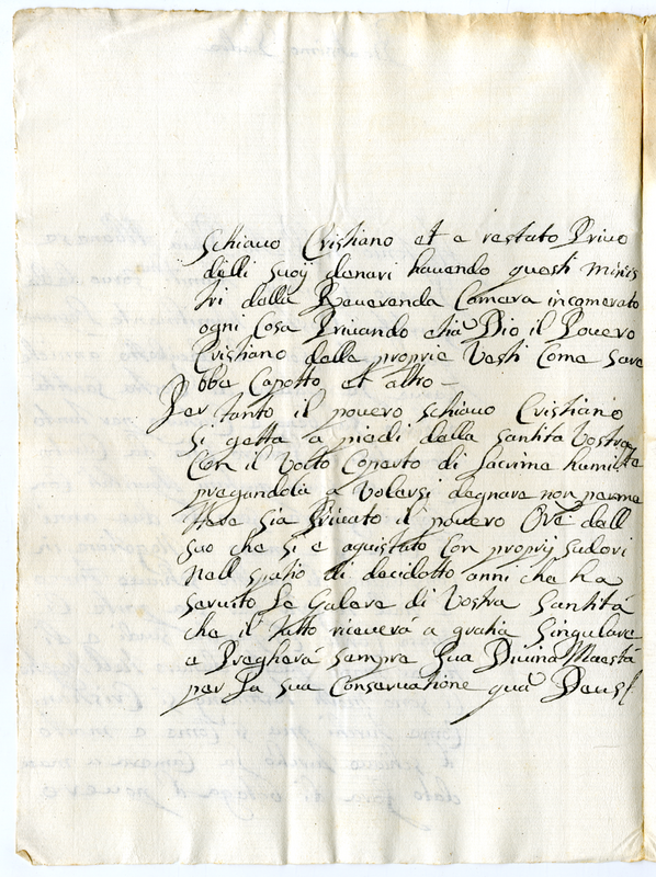 Morto il suo socio di negozio e privato dalla camera apostolica del suo lavoro e dei suoi risparmi chiede al pontefice di intervenire