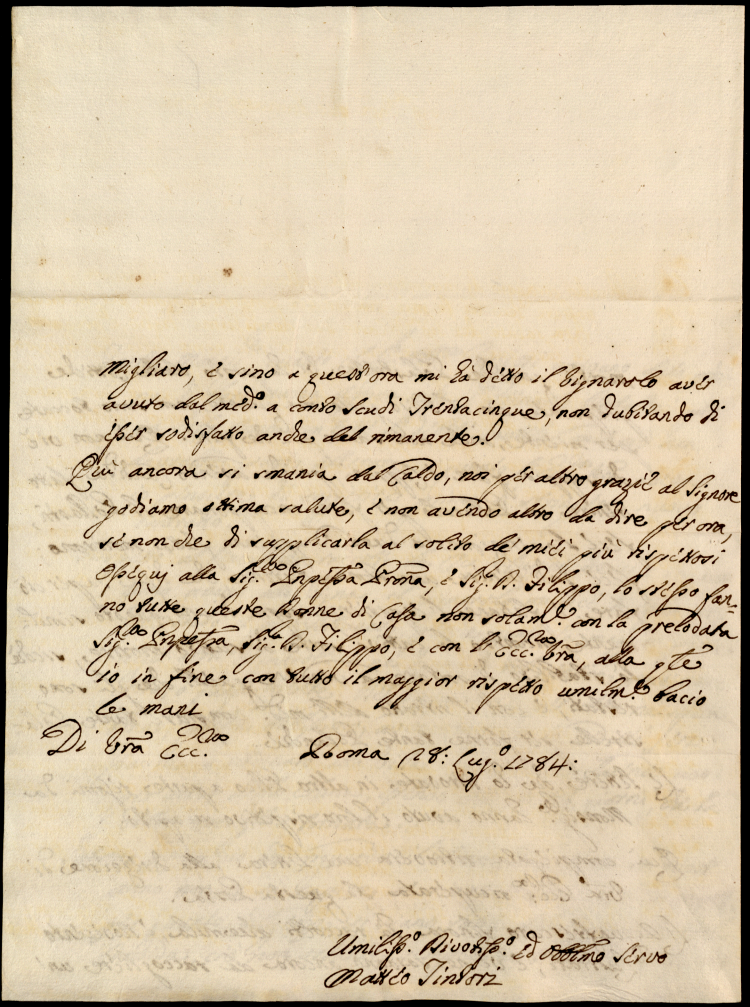 Lettere diverse ricevute in Colbordolo, Pesaro e Senigallia nel 1784