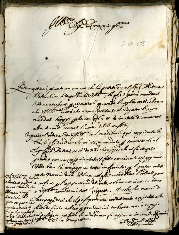 Lettera di monsignor Borromeo Giberto a Malatesta Albani (1644 marzo 4)