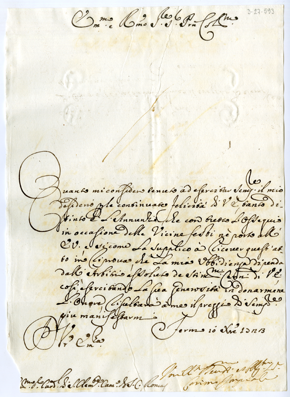 Lettera di Cosimo Imperiali al cardinale Annibale Albani (1723 dicembre 10)