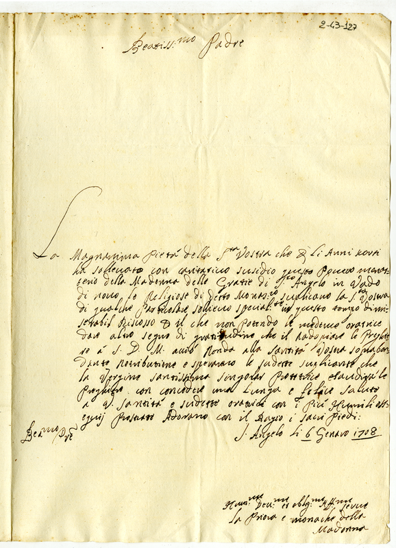 Lettera della priora e monache del monastero della Madonna delle Grazie a papa Clemente XI (1708 gennaio 6)