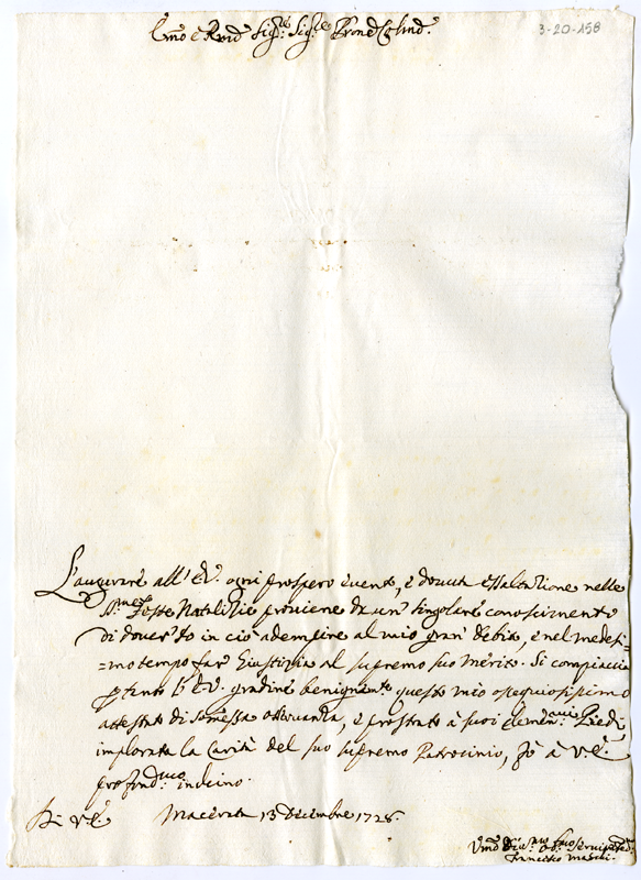 Lettera di Francesco Maschi al cardinale Annibale Albani (1728 dicembre 13)