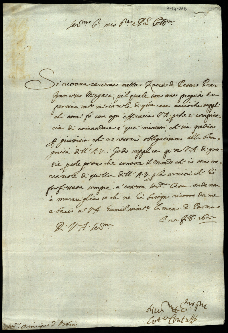 Lettere, memoriali al Serenissimo Principe d'Urbino appartenenti alla carica di segretario di Giustizia