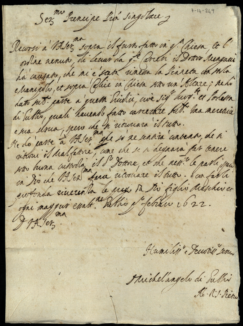 3. Lettere, memoriali al Serenissimo Principe d'Urbino appartenenti alla carica di segretario di Giustizia