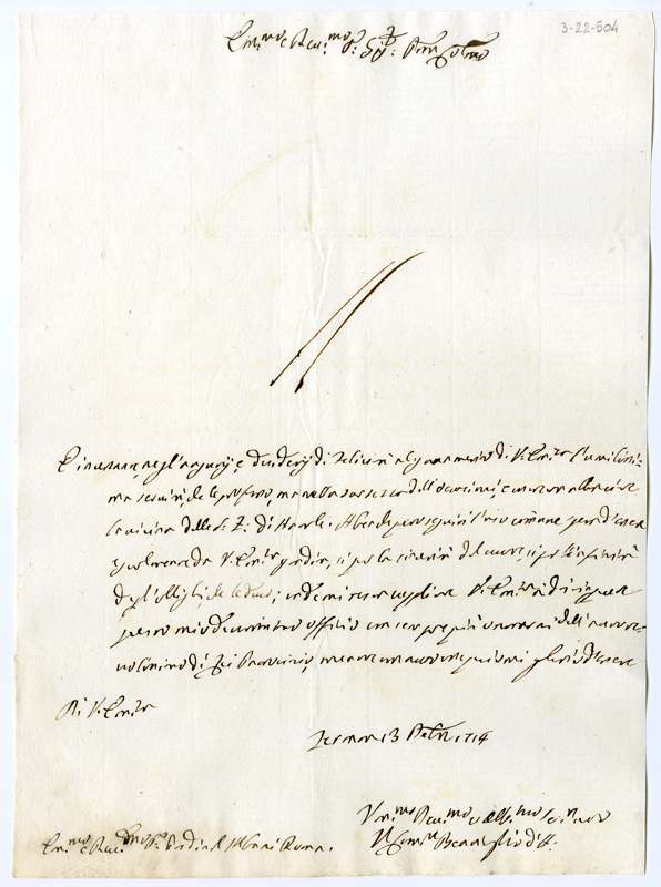 Lettera di Bentivoglio al cardinale Annibale Albani (1714 dicembre 13)