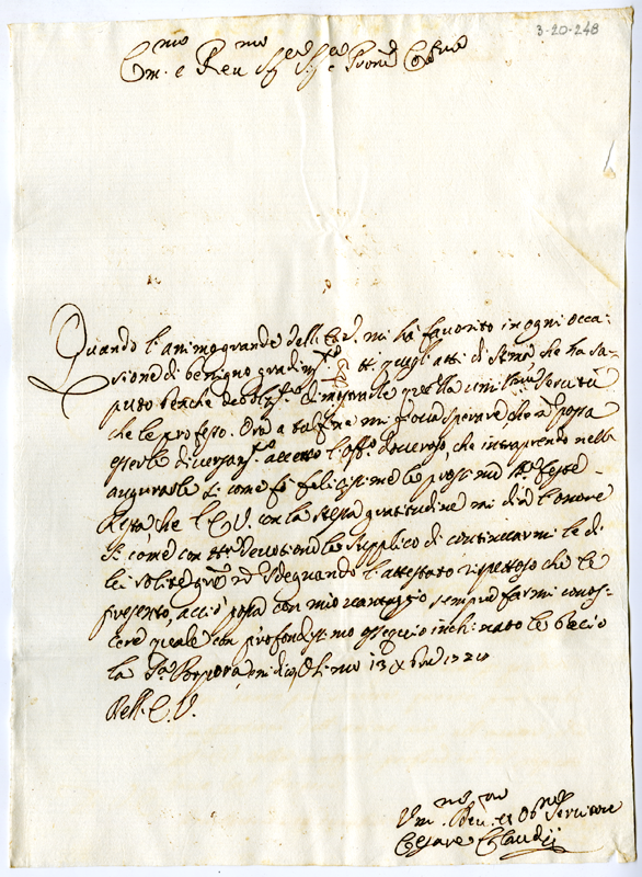 Lettera di Cesare Claudi al cardinale Annibale Albani (1728 dicembre 13)