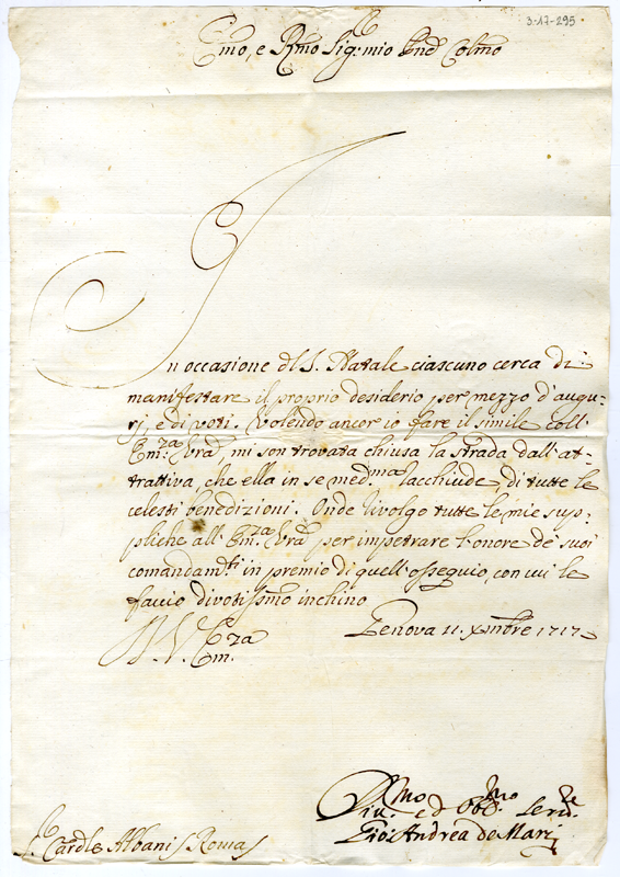 Lettera di Giovanni Andrea de Mari al cardinale Annibale Albani (1717 dicembre 11)