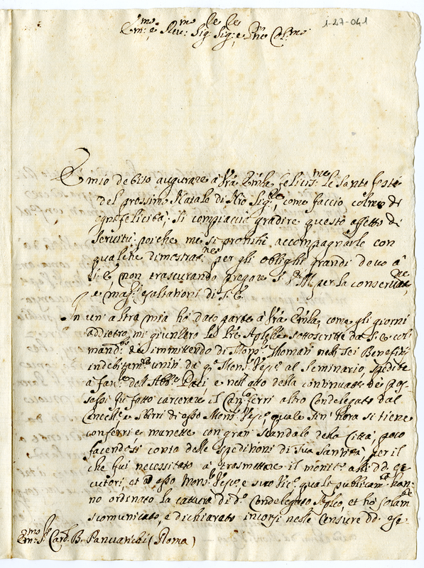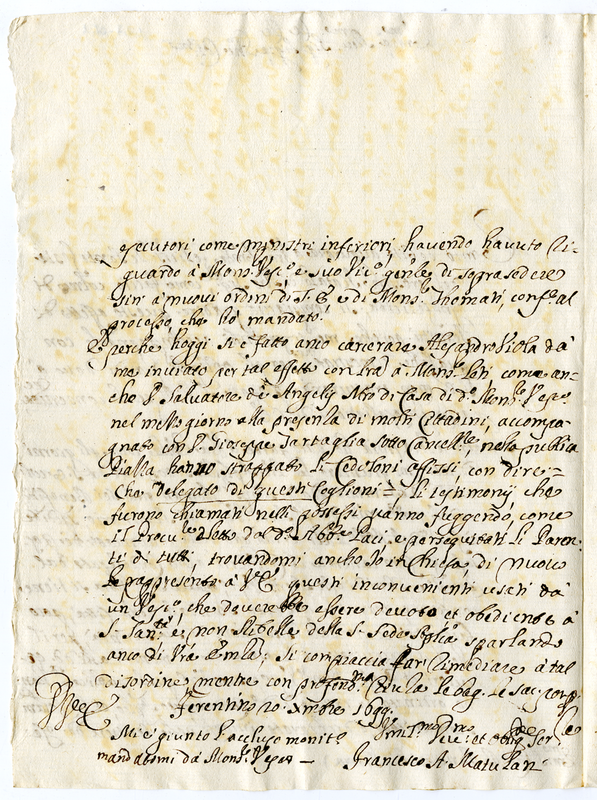 Lettera di Francesco Antonio Matulani al Cardinale Panciatici (1699 dicembre 20)