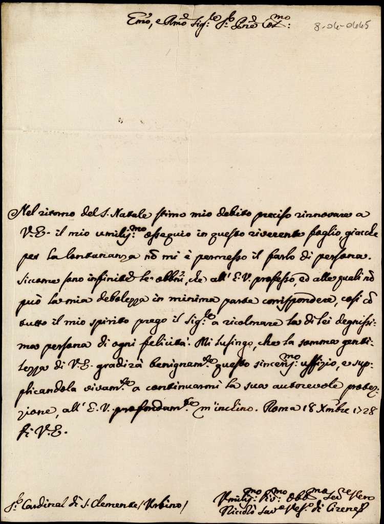 Lettere di diversi all'eccellentissimo signor cardinale S. Clemente dell'anno 1723, 1727 e 1728