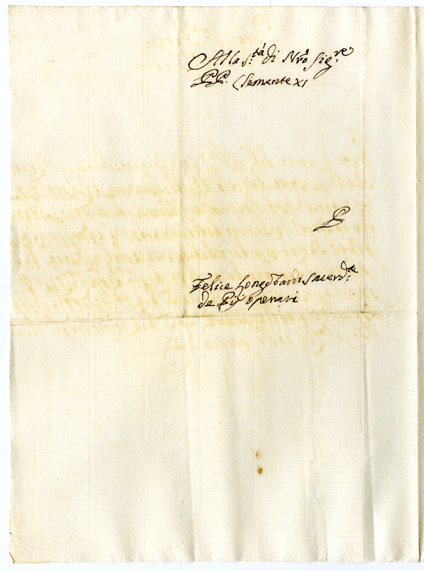 Lettera di Felice Longobardi sacerdote dei Pii operai a papa Clemente XI (1717)