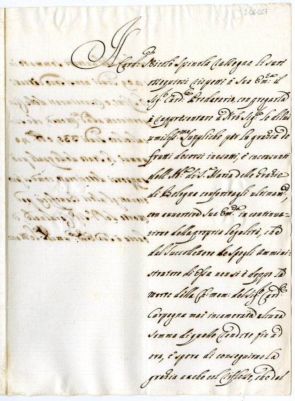 Lettera del Cardinale Nicolò Spinola al Cardinale Prodatario (1700-1721)