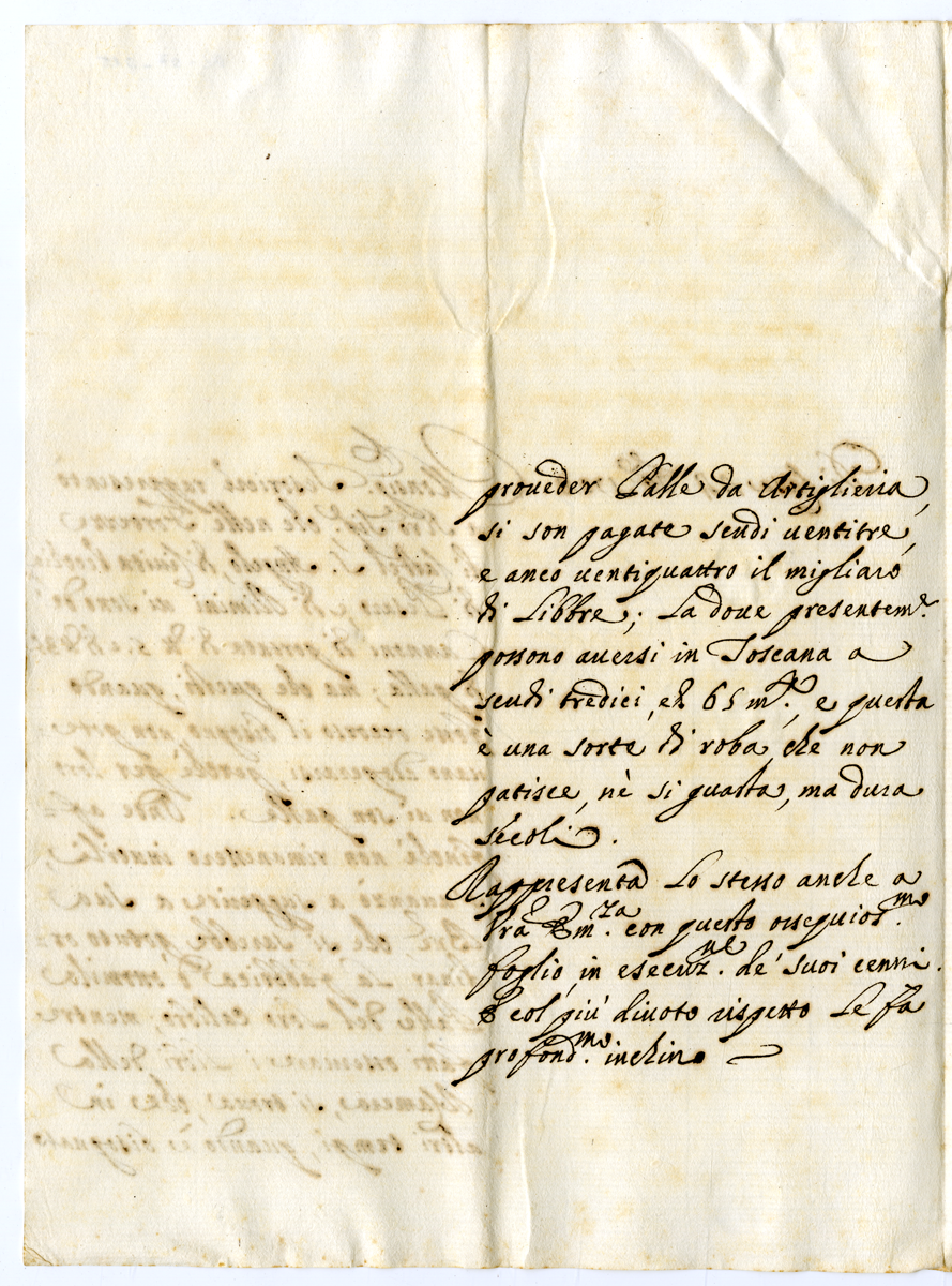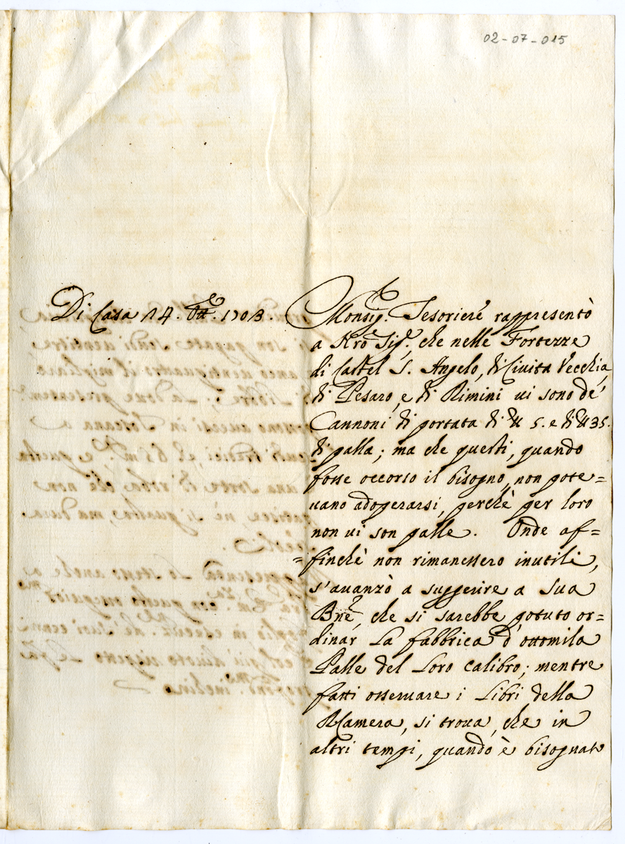 Lettera di monsignor tesoriere a papa Clemente XI (1703 ottobre 24)