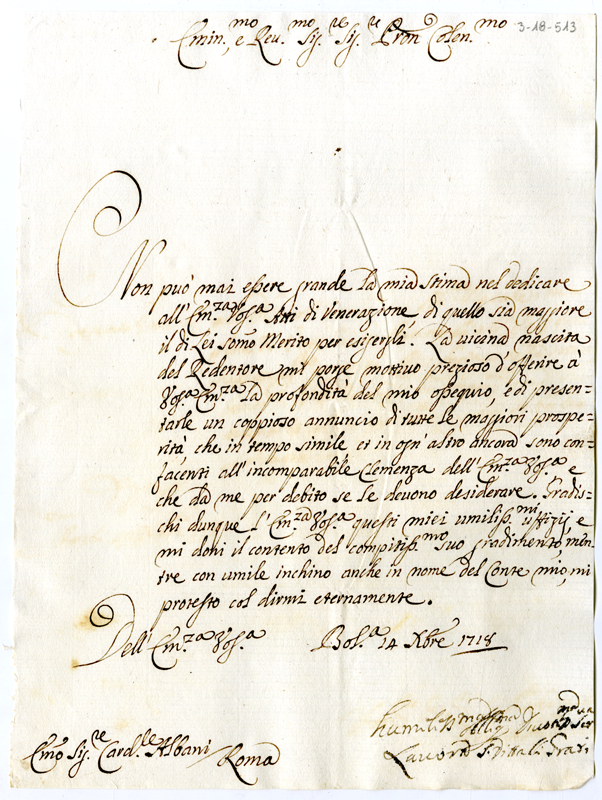Lettera di Grati al cardinale Annibale Albani (1718 dicembre 14)