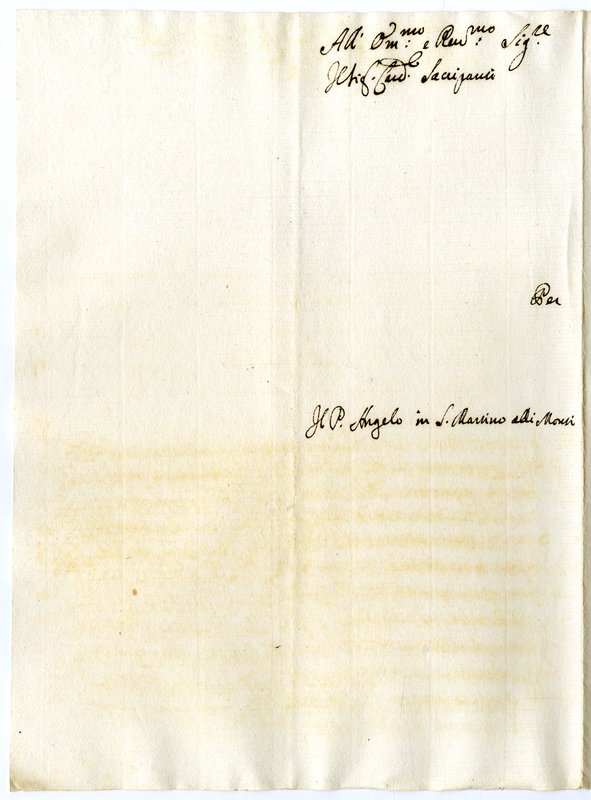 Lettera di padre Angelo in San Martino ai Monti al cardinale Sacripanti (1700-1721)