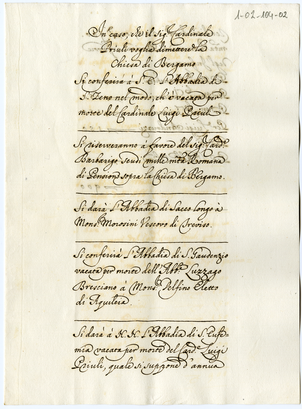 In caso che il sig. card. Prioli non dimetta la chiesa di Bergamo. Disposizioni