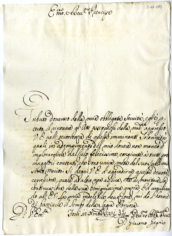 Lettera di Giacomo Gagni al cardinale Annibale Albani (1731 dicembre 12)